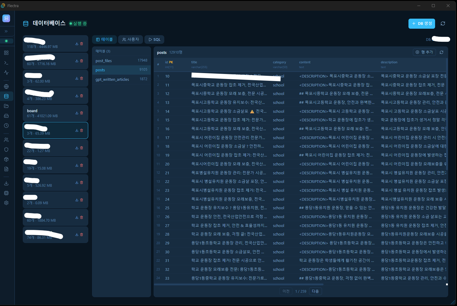 - MySQL/MariaDB, PostgreSQL, Redis 상태 확인