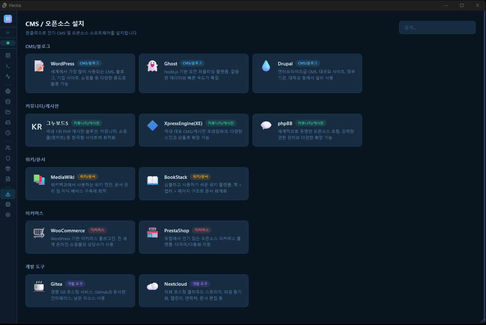 - WordPress, 그누보드5, XE, Drupal, Ghost, Nextcloud 원클릭 설치