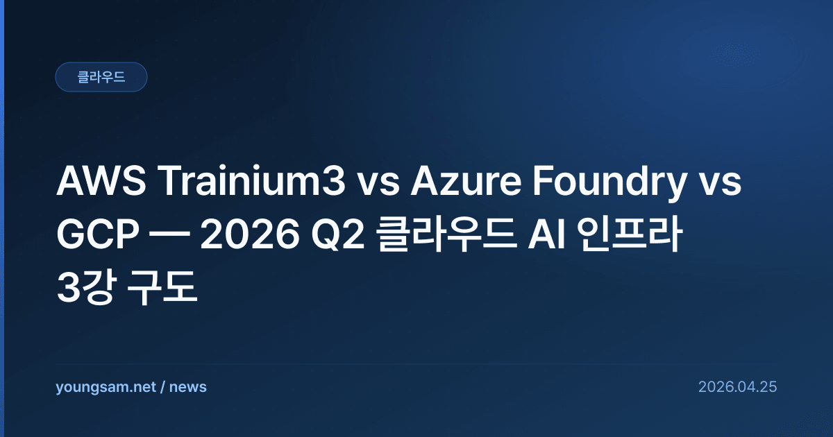 2026년 1분기를 거치며 AWS·Azure·Google Cloud의 AI 인프라 진영이 또렷해졌다. 4월 22일 끝난 Google Cloud Next, 3월 말 AWS Trainium3 발표, 2월 Azure Foundry 통합을 종합하면 다음과 같은 3강 구도다.
