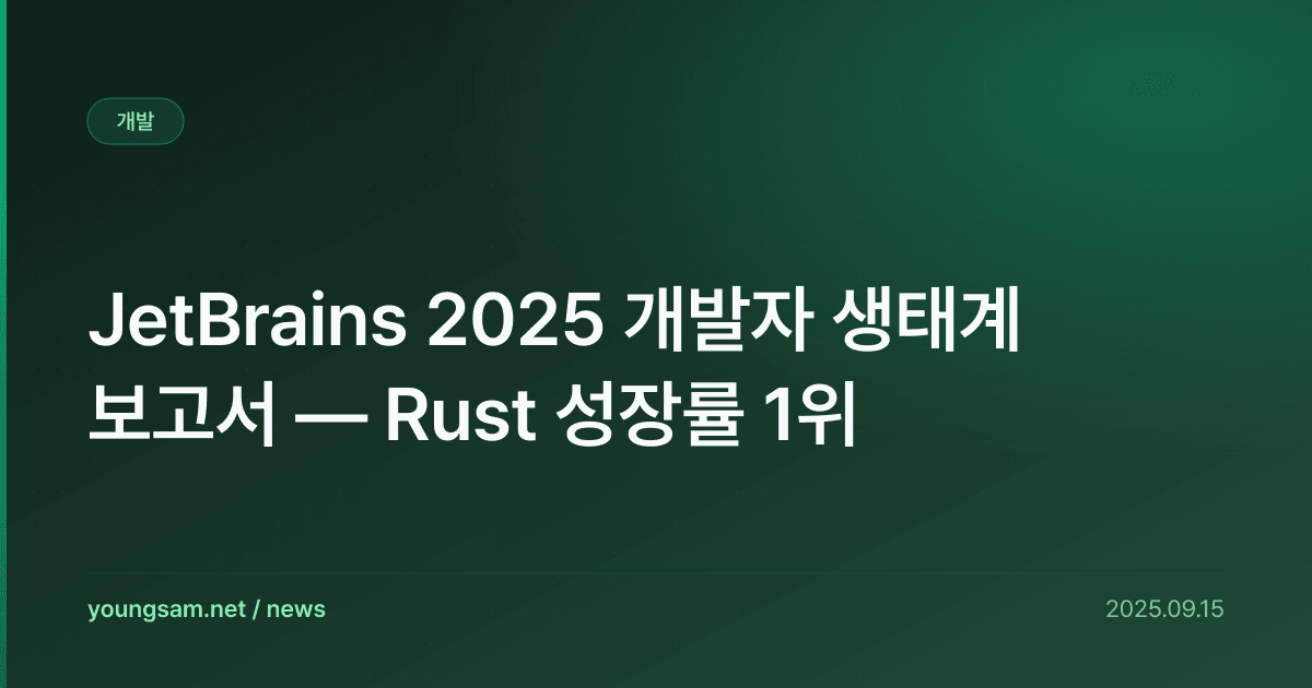 JetBrains가 2025년 개발자 생태계 보고서를 발표했다. 전 세계 26,000명 이상의 개발자를 대상으로 한 이 연례 설문은 프로그래밍 언어, 도구, 기술 트렌드를 종합적으로 분석한다. 올해 가장 눈에 띄는 결과는 Rust의 사용률 증가율 1위 기록이다.