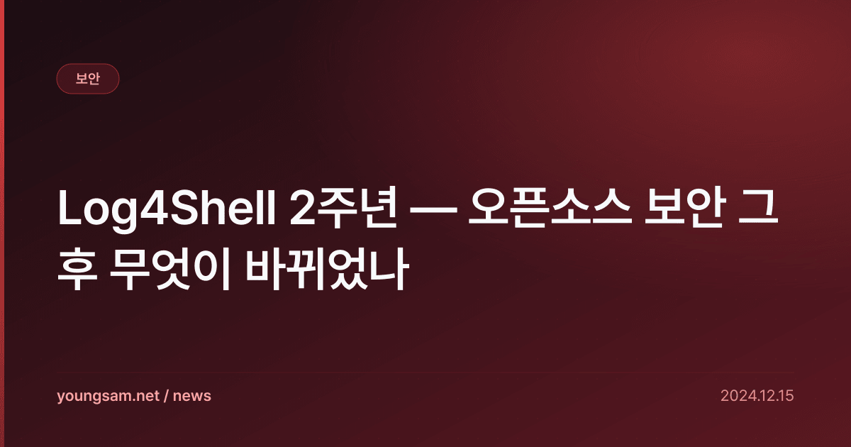 2021년 12월 전 세계를 뒤흔든 Log4Shell 취약점(CVE-2021-44228) 발견 3주년을 맞아, 오픈소스 보안 생태계가 어떻게 변화했는지 점검한다. Apache Log4j의 치명적 취약점은 수십만 개 시스템에 영향을 미치며 소프트웨어 공급망 보안에 대한 근본적 재고를 촉발했다.