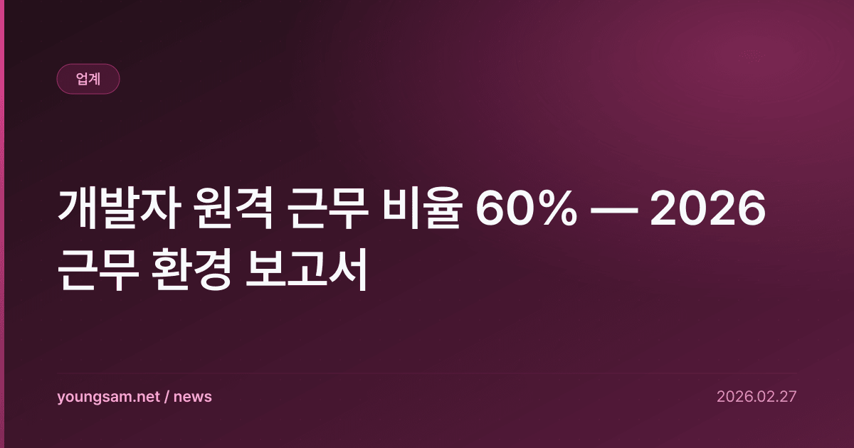 개발자 원격 근무 비율 60% — 2026 근무 환경 보고서 — 이 소식이 전해지면서 개발자 커뮤니티에서 큰 관심을 받고 있다. 업계 전문가들은 이번 변화가 향후 기술 생태계에 상당한 영향을 미칠 것으로 전망하고 있다.