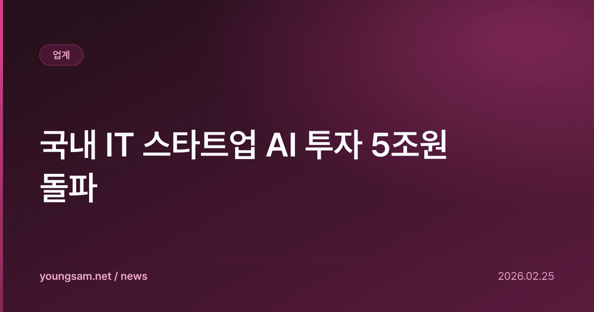 국내 IT 스타트업 AI 투자 5조원 돌파 — 이 소식이 전해지면서 개발자 커뮤니티에서 큰 관심을 받고 있다. 업계 전문가들은 이번 변화가 향후 기술 생태계에 상당한 영향을 미칠 것으로 전망하고 있다.