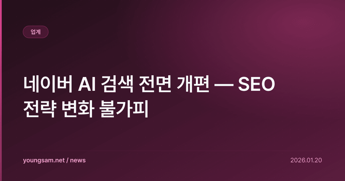네이버 AI 검색 전면 개편 — SEO 전략 변화 불가피 — 이 소식이 전해지면서 개발자 커뮤니티에서 큰 관심을 받고 있다. 업계 전문가들은 이번 변화가 향후 기술 생태계에 상당한 영향을 미칠 것으로 전망하고 있다.