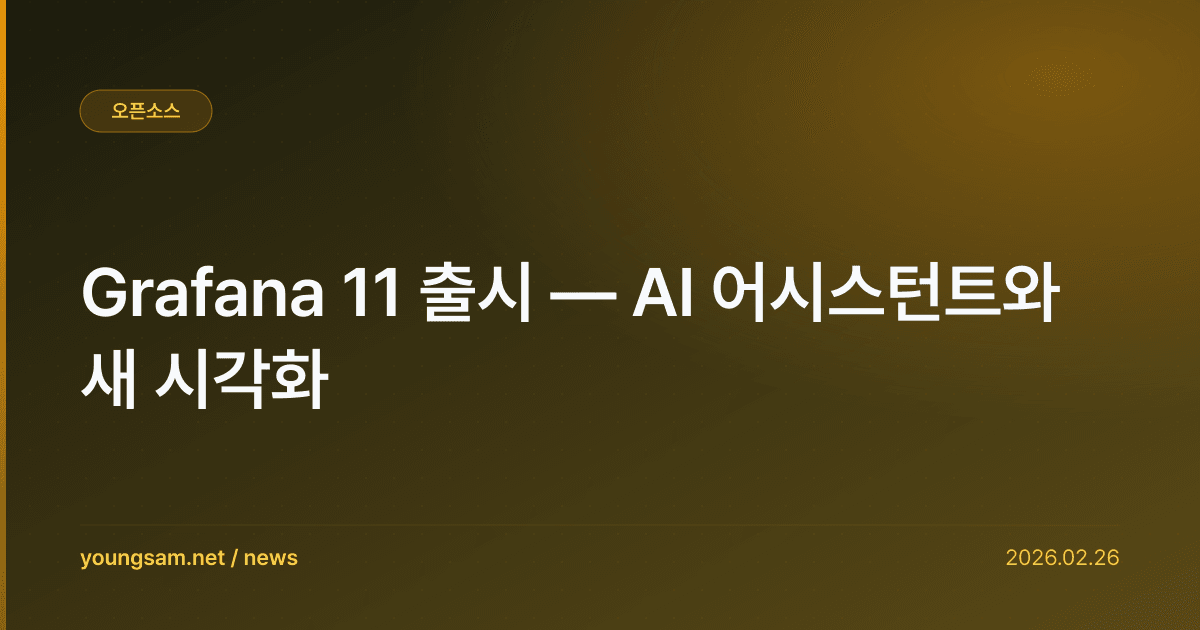 Grafana 11 출시 — AI 어시스턴트와 새 시각화 — 이 소식이 전해지면서 개발자 커뮤니티에서 큰 관심을 받고 있다. 업계 전문가들은 이번 변화가 향후 기술 생태계에 상당한 영향을 미칠 것으로 전망하고 있다.