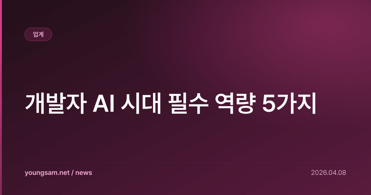 개발자 AI 시대 필수 역량 5가지 — 이 소식이 개발자 커뮤니티에서 큰 관심을 받고 있다. 전문가들은 이번 변화가 기술 생태계에 상당한 영향을 미칠 것으로 전망한다.