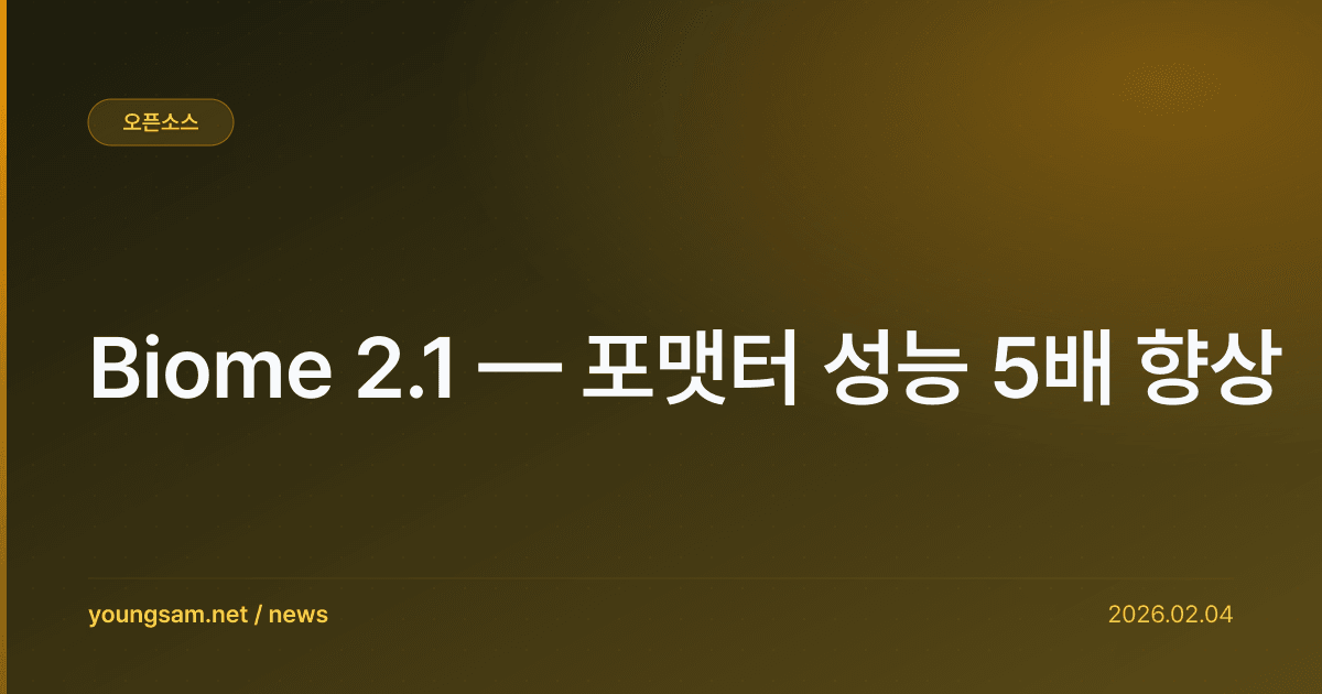 Biome 2.1 — 포맷터 성능 5배 향상 — 이 소식이 개발자 커뮤니티에서 큰 관심을 받고 있다. 전문가들은 이번 변화가 기술 생태계에 상당한 영향을 미칠 것으로 전망한다.