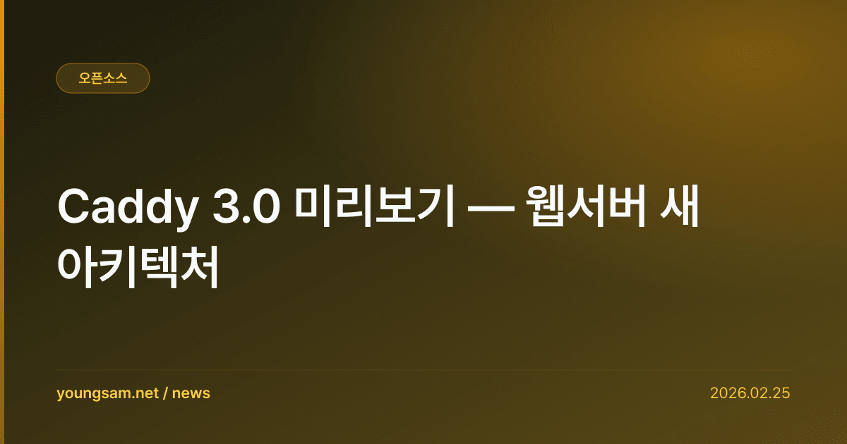 Caddy 3.0 미리보기 — 웹서버 새 아키텍처 — 이 소식이 개발자 커뮤니티에서 큰 관심을 받고 있다. 전문가들은 이번 변화가 기술 생태계에 상당한 영향을 미칠 것으로 전망한다.