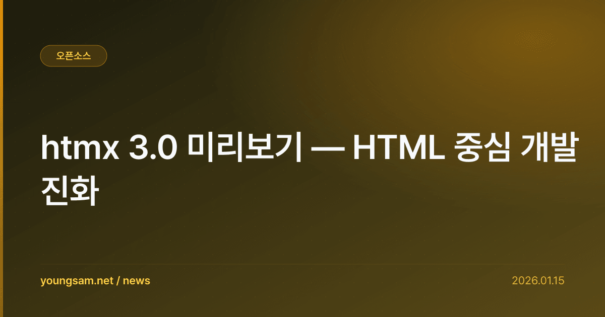 htmx 3.0 미리보기 — HTML 중심 개발 진화 — 이 소식이 개발자 커뮤니티에서 큰 관심을 받고 있다. 전문가들은 이번 변화가 기술 생태계에 상당한 영향을 미칠 것으로 전망한다.