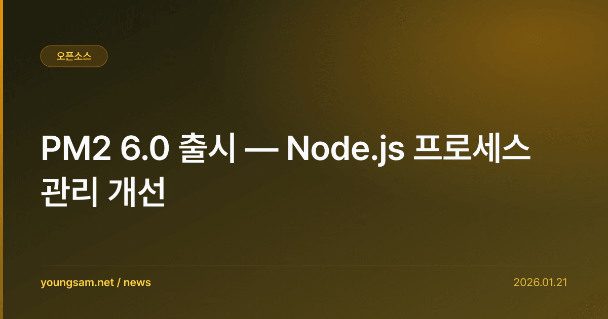 PM2 6.0 출시 — Node.js 프로세스 관리 개선 — 이 소식이 개발자 커뮤니티에서 큰 관심을 받고 있다. 전문가들은 이번 변화가 기술 생태계에 상당한 영향을 미칠 것으로 전망한다.