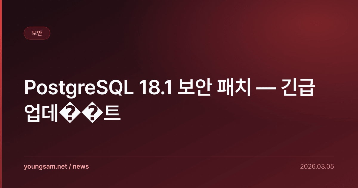 PostgreSQL 18.1 보안 패치 — 긴급 업데��트 — 이 소식이 개발자 커뮤니티에서 큰 관심을 받고 있다. 전문가들은 이번 변화가 기술 생태계에 상당한 영향을 미칠 것으로 전망한다.