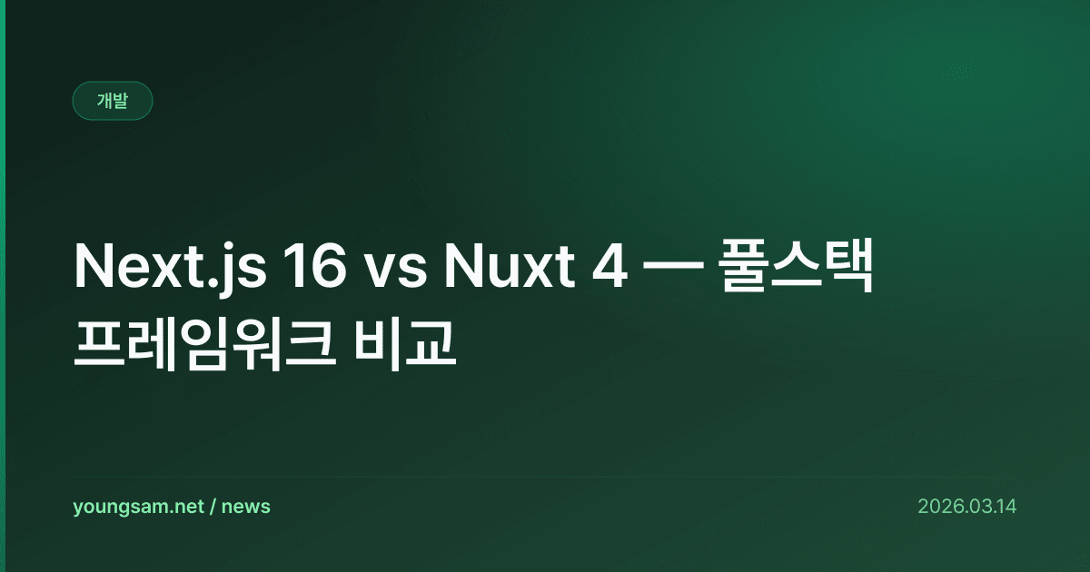 Next.js 16 vs Nuxt 4 — 풀스택 프레임워크 비교 — 개발자 커뮤니티에서 큰 관심을 받고 있다.