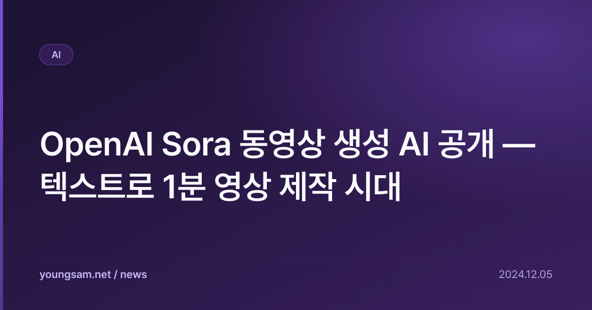 OpenAI Sora 동영상 생성 AI 공개 — 텍스트로 1분 영상 제작 시대