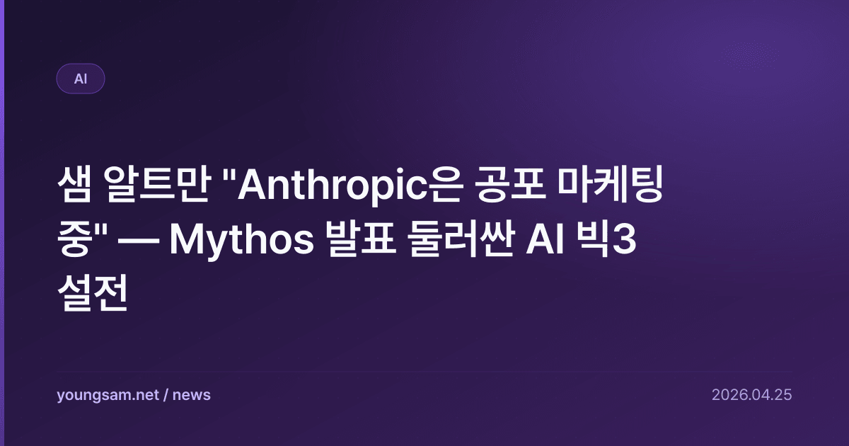 OpenAI CEO 샘 알트만이 4월 24일 Anthropic의 Claude Mythos 공개 방식을 정면 비판했다. 그는 X에 "AI를 위험하게 보이도록 포장해 규제와 자금을 끌어오는 전략은 산업 전체에 해롭다"는 취지의 글을 올렸다.