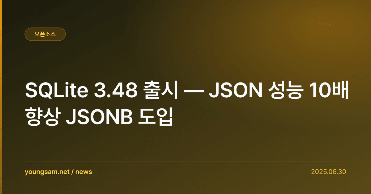 세계에서 가장 널리 사용되는 임베디드 데이터베이스 SQLite가 3.48 버전을 정식 출시했다. 이번 릴리스의 하이라이트는 JSONB(JSON Binary) 저장 형식의 도입이다. JSON 데이터를 텍스트가 아닌 바이너리로 저장하여 읽기·쓰기 성능을 획기적으로 향상시켰다.