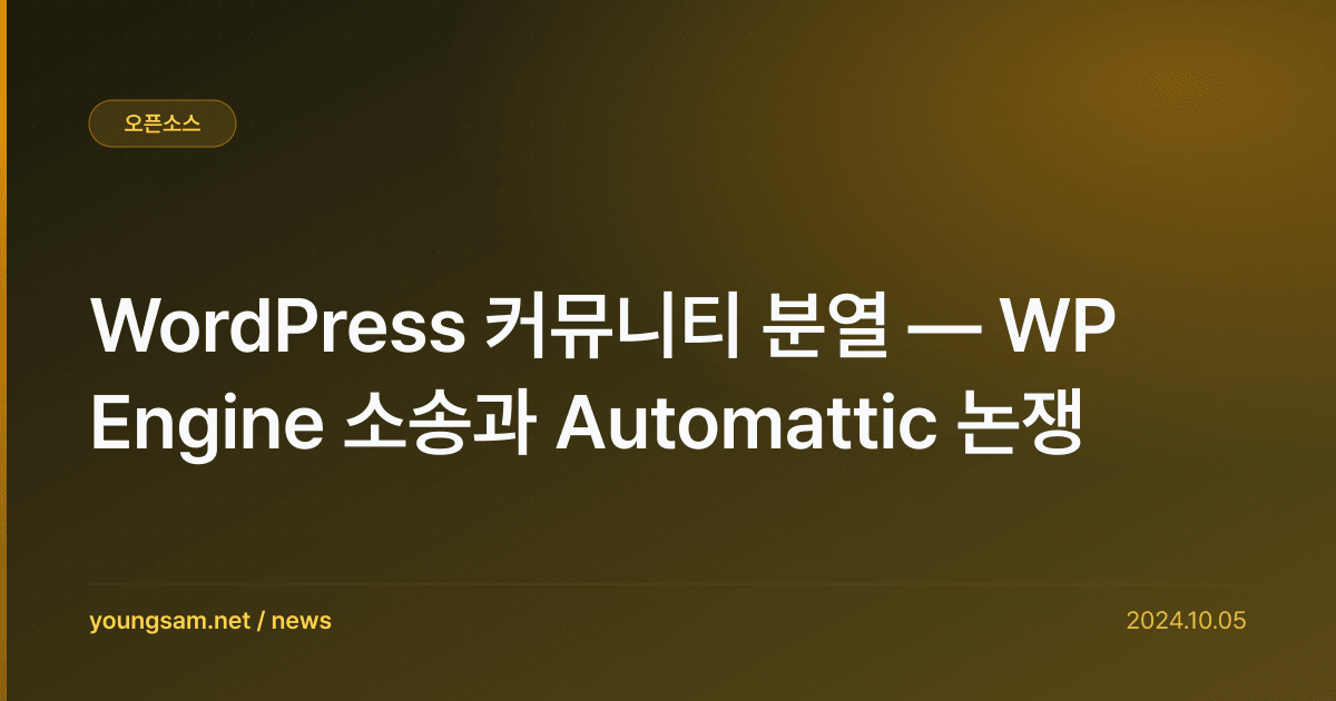 Automattic의 CEO Matt Mullenweg와 WP Engine 간의 법적 분쟁이 WordPress 커뮤니티를 양분하며 오픈소스 프로젝트의 거버넌스와 상업적 이용에 대한 근본적인 논쟁을 촉발했다.