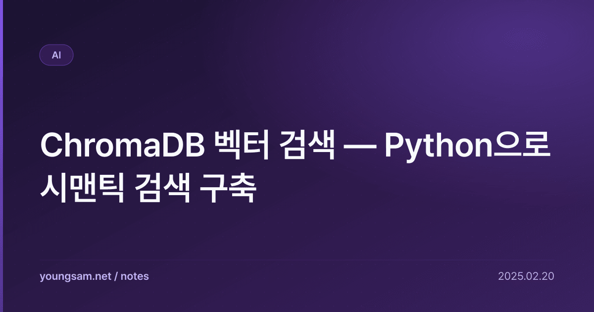 전통적인 키워드 검색은 정확한 단어 매칭에 의존하지만, 시맨틱 검색은 텍스트의 의미를 벡터로 변환하여 유사도를 기반으로 검색합니다. ChromaDB는 오픈소스 벡터 데이터베이스로 임베딩 저장, 인덱싱, 쿼리를 간단한 API로 제공합니다.