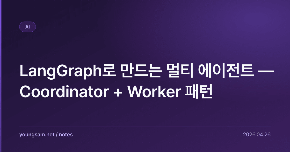단일 에이전트로 풀 수 없는 복잡한 작업은 멀티 에이전트로 역할 분담. LangGraph는 그래프 기반으로 에이전트들의 협력을 코드로 표현. Coordinator(계획·조율) + Worker(실행)의 고전 패턴이 가장 검증됨.