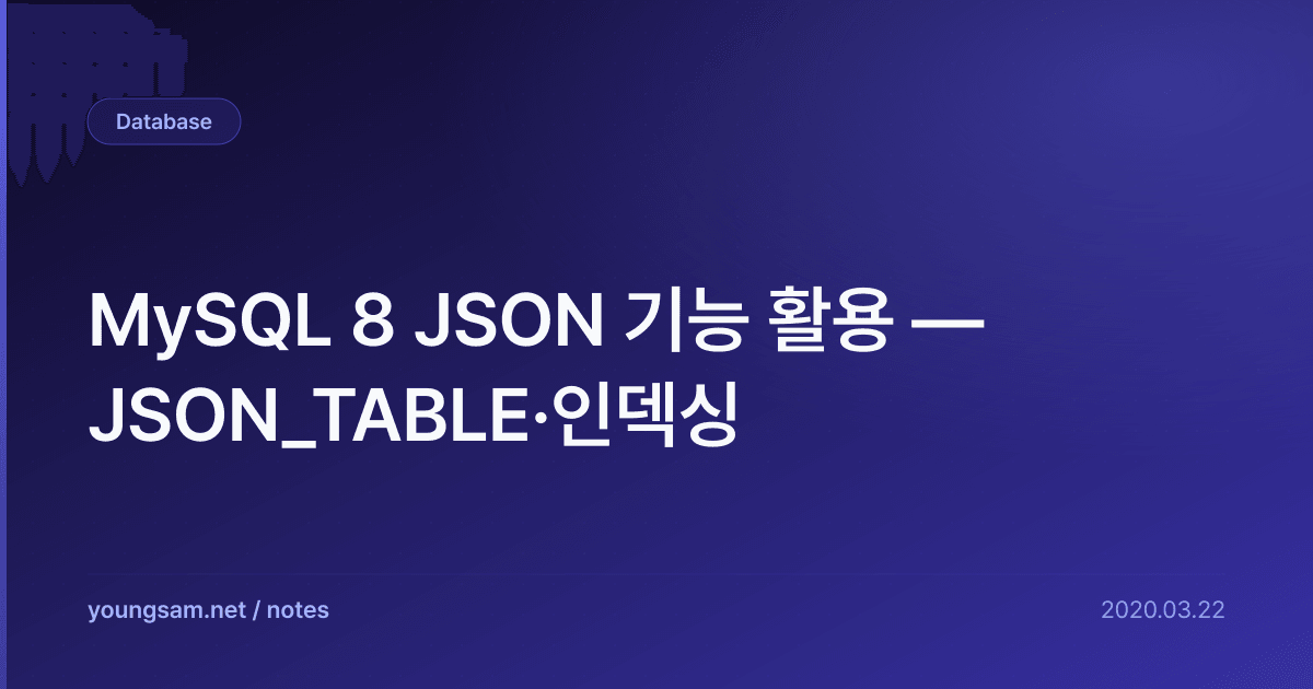 실무에서 MySQL 8 JSON 기능 활용 — JSON_TABLE·인덱싱 관련으로 자주 겪는 문제들과 해결 방법을 정리합니다.