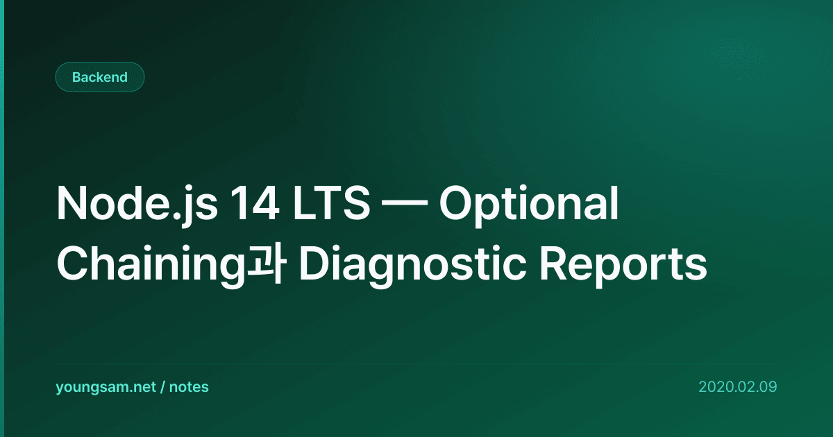 Node.js 14 LTS — Optional Chaining과 Diagnostic Reports을 이해하기 위해 먼저 핵심 개념을 정리하겠습니다. 표면적인 사용법만 알면 실전에서 문제가 생겼을 때 대응하기 어렵기 때문에, 동작 원리를 먼저 파악하는 것이 중요합니다.