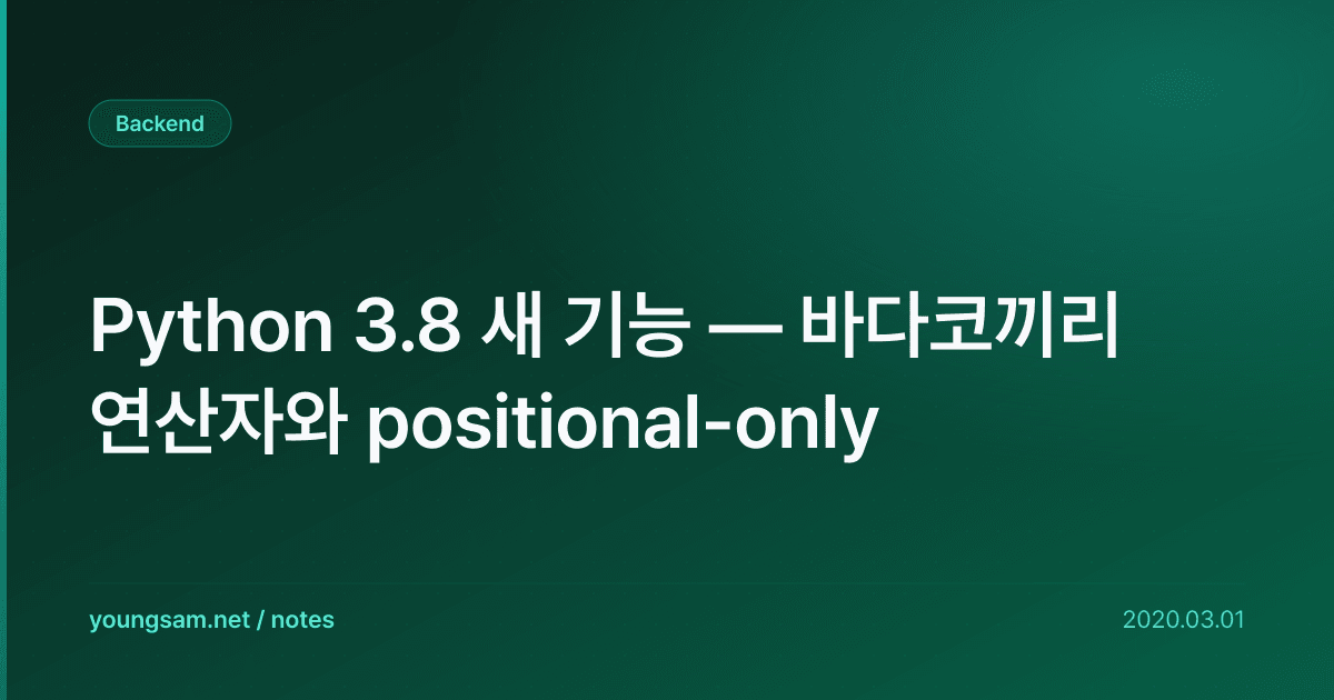 Python 3.8 새 기능 — 바다코끼리 연산자와 positional-only을 이해하기 위해 먼저 핵심 개념을 정리하겠습니다. 표면적인 사용법만 알면 실전에서 문제가 생겼을 때 대응하기 어렵기 때문에, 동작 원리를 먼저 파악하는 것이 중요합니다.