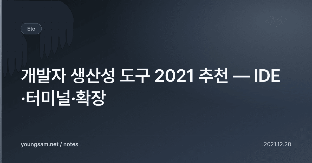 개발자 생산성 도구 2021 추천 — IDE·터미널·확장은 개발자라면 한 번쯤 고민하는 주제입니다. 올바른 방법을 알면 생산성이 크게 향상됩니다.