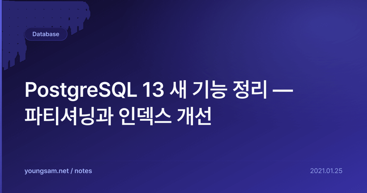 PostgreSQL 13 새 기능 정리 — 파티셔닝과 인덱스 개선을 이해하기 위해 먼저 핵심 개념을 정리하겠습니다. 표면적인 사용법만 알면 실전에서 문제가 생겼을 때 대응하기 어렵기 때문에, 동작 원리를 먼저 파악하는 것이 중요합니다.