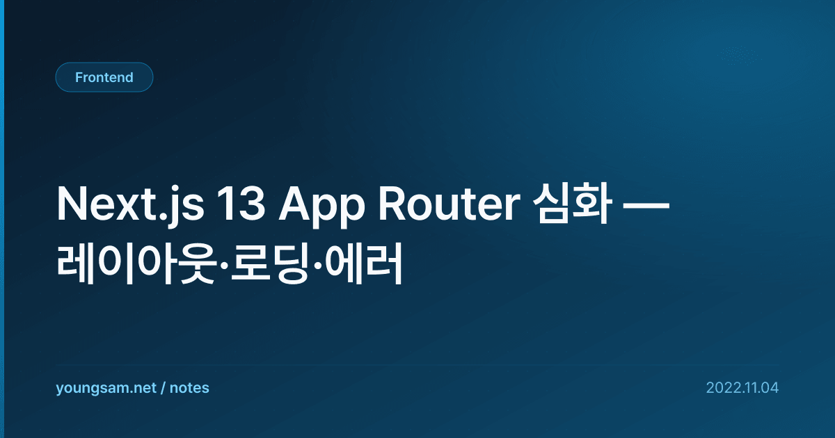 실무에서 Next.js 13 App Router 심화 — 레이아웃·로딩·에러 관련으로 자주 겪는 문제들과 해결 방법을 정리합니다.