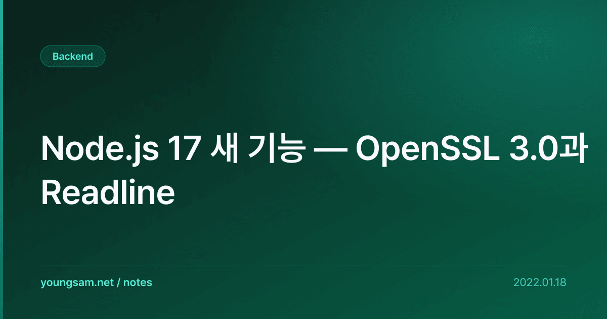 Node.js 17 새 기능 — OpenSSL 3.0과 Readline을 이해하기 위해 먼저 핵심 개념을 정리하겠습니다. 표면적인 사용법만 알면 실전에서 문제가 생겼을 때 대응하기 어렵기 때문에, 동작 원리를 먼저 파악하는 것이 중요합니다.