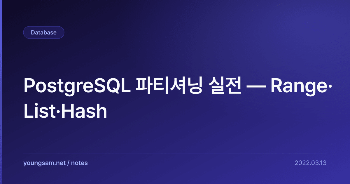실무에서 PostgreSQL 파티셔닝 실전 — Range·List·Hash 관련으로 자주 겪는 문제들과 해결 방법을 정리합니다.
