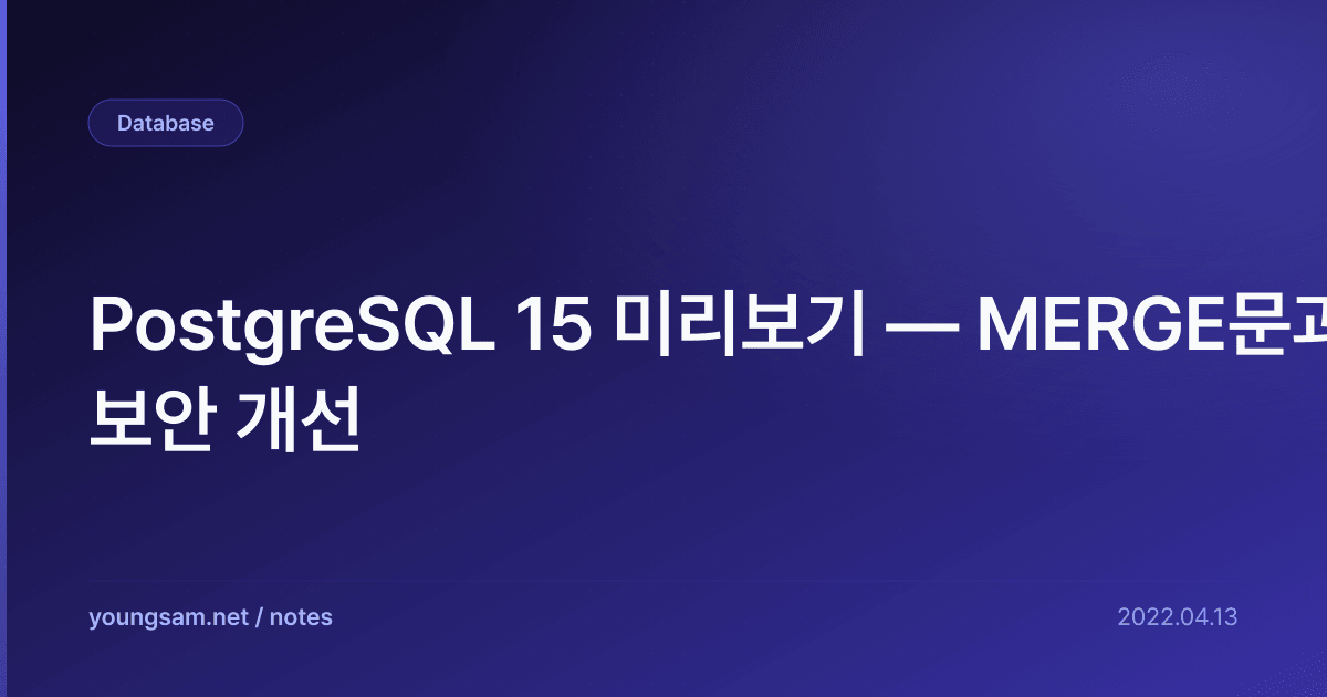 PostgreSQL 15 미리보기 — MERGE문과 보안 개선을 이해하기 위해 먼저 핵심 개념을 정리하겠습니다. 표면적인 사용법만 알면 실전에서 문제가 생겼을 때 대응하기 어렵기 때문에, 동작 원리를 먼저 파악하는 것이 중요합니다.