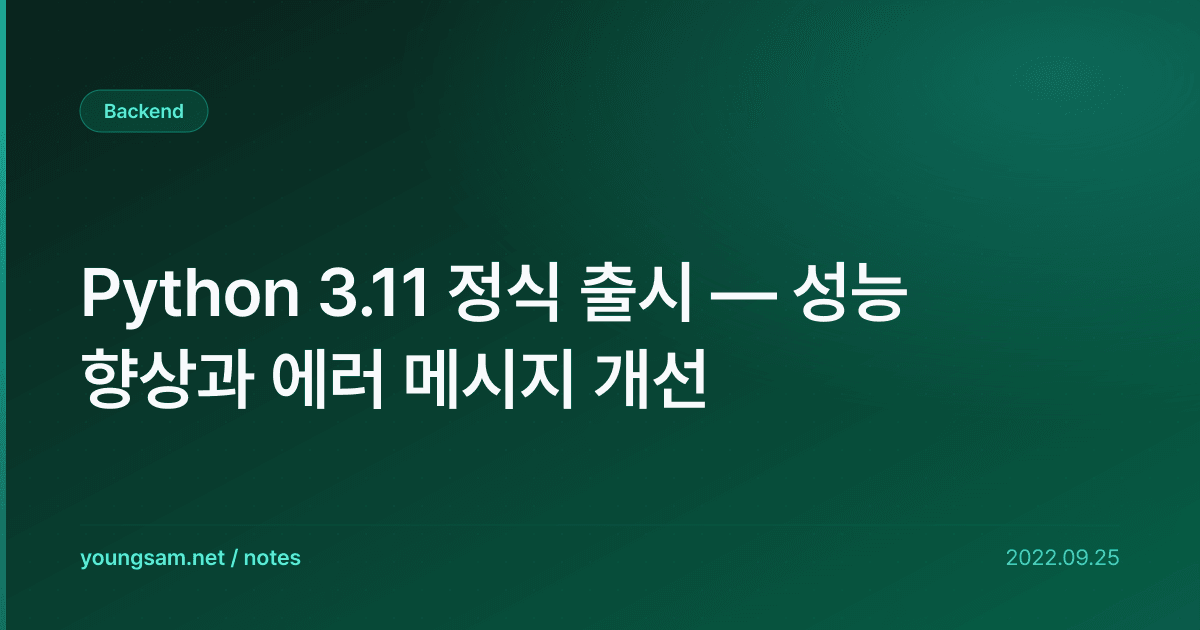 Python 3.11 정식 출시 — 성능 향상과 에러 메시지 개선을 이해하기 위해 먼저 핵심 개념을 정리하겠습니다. 표면적인 사용법만 알면 실전에서 문제가 생겼을 때 대응하기 어렵기 때문에, 동작 원리를 먼저 파악하는 것이 중요합니다.