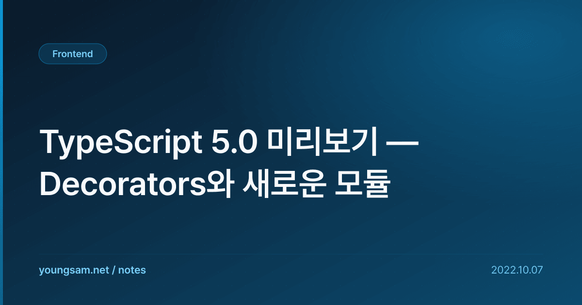TypeScript 5.0 미리보기 — Decorators와 새로운 모듈을 이해하기 위해 먼저 핵심 개념을 정리하겠습니다. 표면적인 사용법만 알면 실전에서 문제가 생겼을 때 대응하기 어렵기 때문에, 동작 원리를 먼저 파악하는 것이 중요합니다.