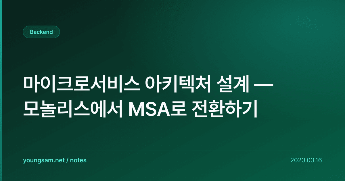 마이크로서비스 아키텍처 설계 — 모놀리스에서 MSA로 전환하기에 대해 심층적으로 다룹니다. 실무에서 바로 적용할 수 있는 내용을 중심으로 정리했습니다.