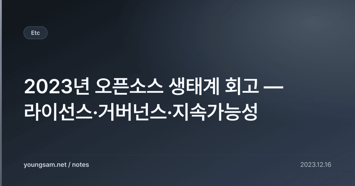 2023년 오픈소스 생태계 회고 — 라이선스·거버넌스·지속가능성에 대해 심층적으로 다룹니다. 실무에서 바로 적용할 수 있는 내용을 중심으로 정리했습니다.
