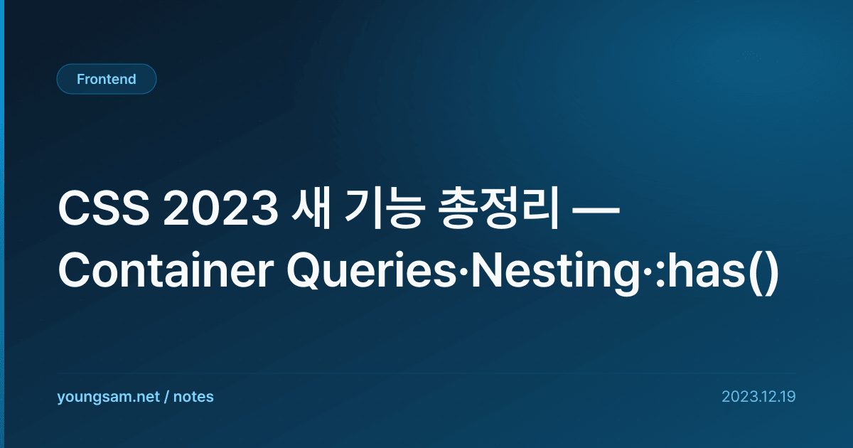 CSS 2023 새 기능 총정리 — Container Queries·Nesting·:has()에 대해 심층적으로 다룹니다. 실무에서 바로 적용할 수 있는 내용을 중심으로 정리했습니다.