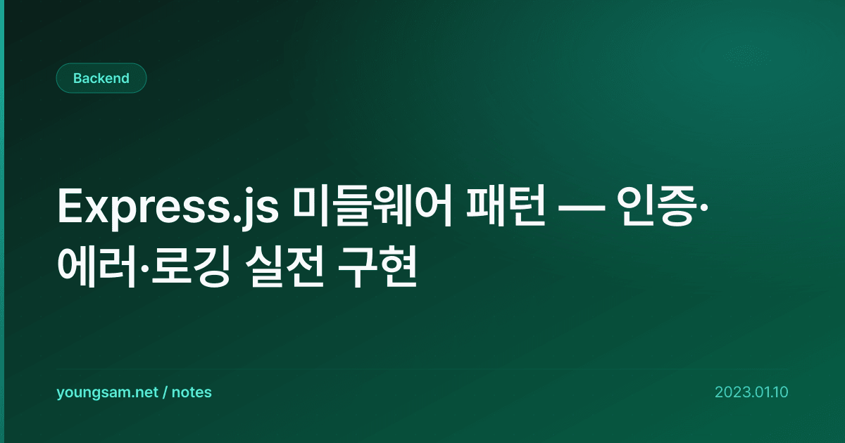 Express.js 미들웨어 패턴 — 인증·에러·로깅 실전 구현에 대해 심층적으로 다룹니다. 실무에서 바로 적용할 수 있는 내용을 중심으로 정리했습니다.