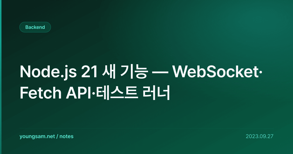 Node.js 21 새 기능 — WebSocket·Fetch API·테스트 러너에 대해 심층적으로 다룹니다. 실무에서 바로 적용할 수 있는 내용을 중심으로 정리했습니다.