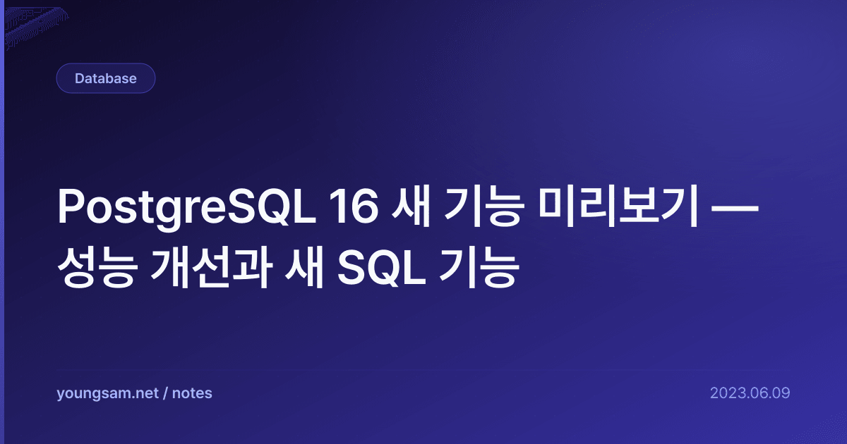 PostgreSQL 16 새 기능 미리보기 — 성능 개선과 새 SQL 기능에 대해 심층적으로 다룹니다. 실무에서 바로 적용할 수 있는 내용을 중심으로 정리했습니다.