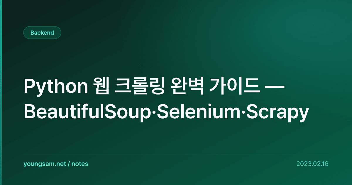 Python 웹 크롤링 완벽 가이드 — BeautifulSoup·Selenium·Scrapy에 대해 심층적으로 다룹니다. 실무에서 바로 적용할 수 있는 내용을 중심으로 정리했습니다.