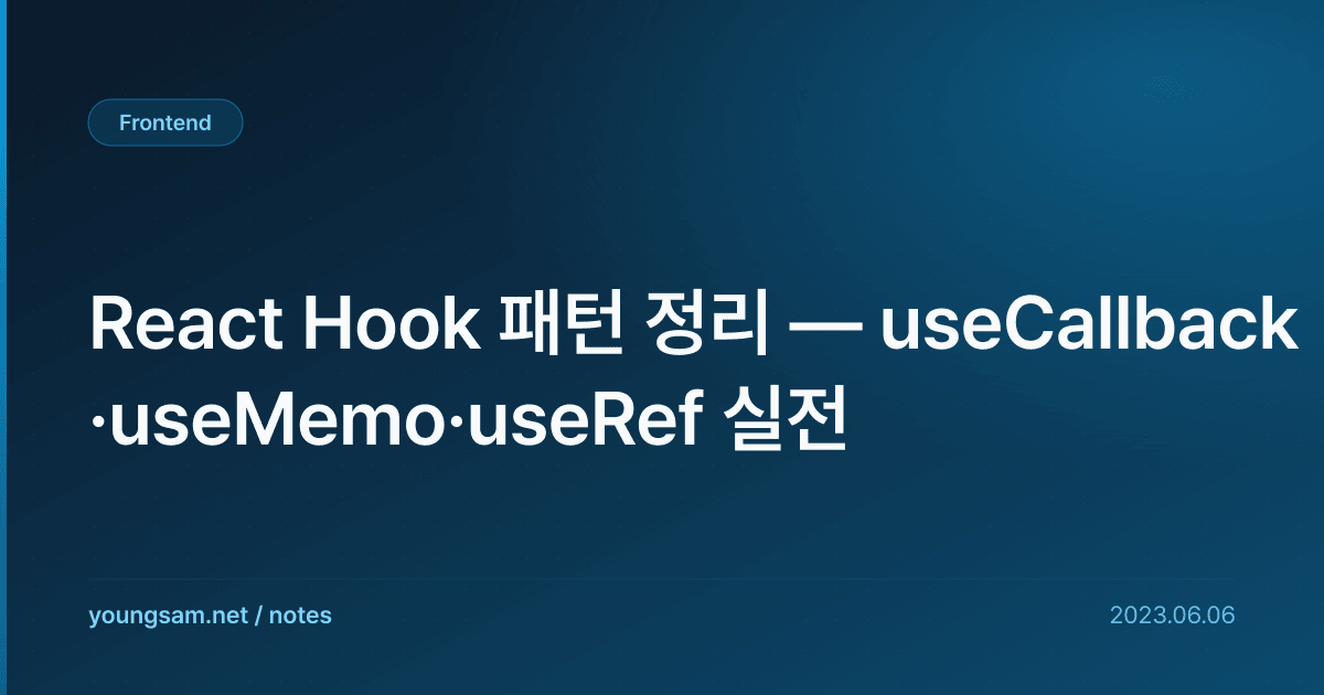 React Hook 패턴 정리 — useCallback·useMemo·useRef 실전에 대해 심층적으로 다룹니다. 실무에서 바로 적용할 수 있는 내용을 중심으로 정리했습니다.