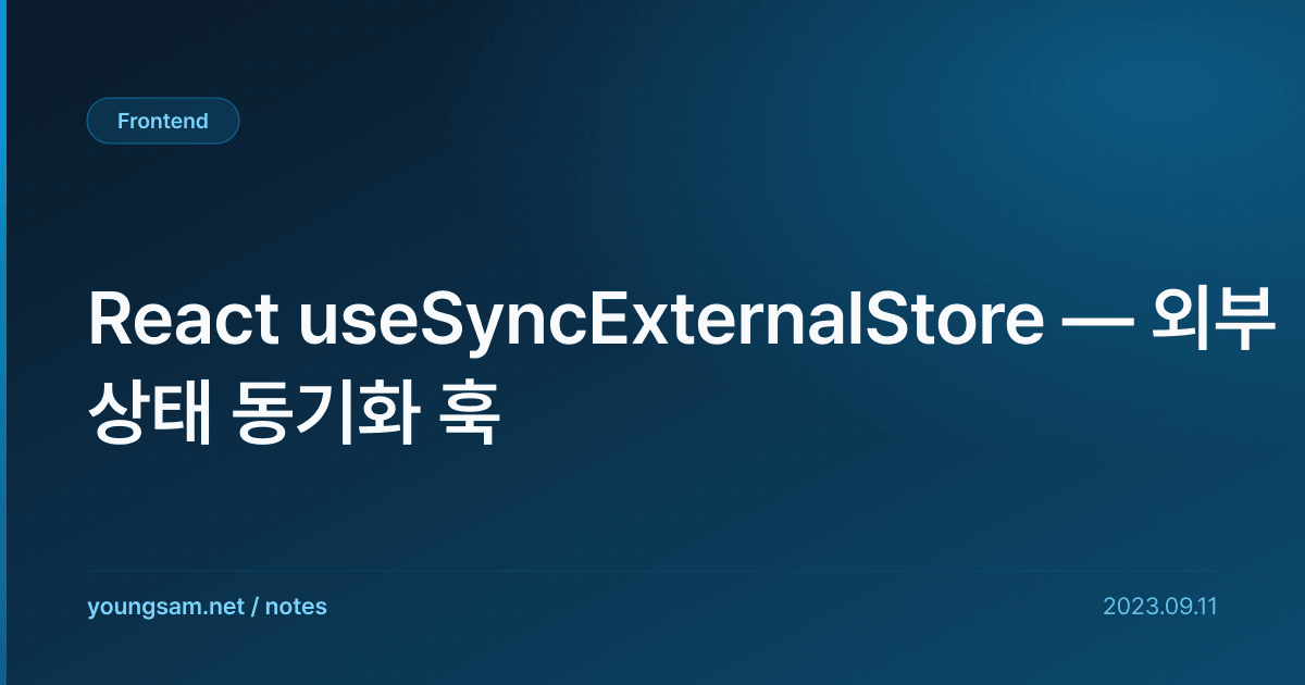 React useSyncExternalStore — 외부 상태 동기화 훅에 대해 심층적으로 다룹니다. 실무에서 바로 적용할 수 있는 내용을 중심으로 정리했습니다.