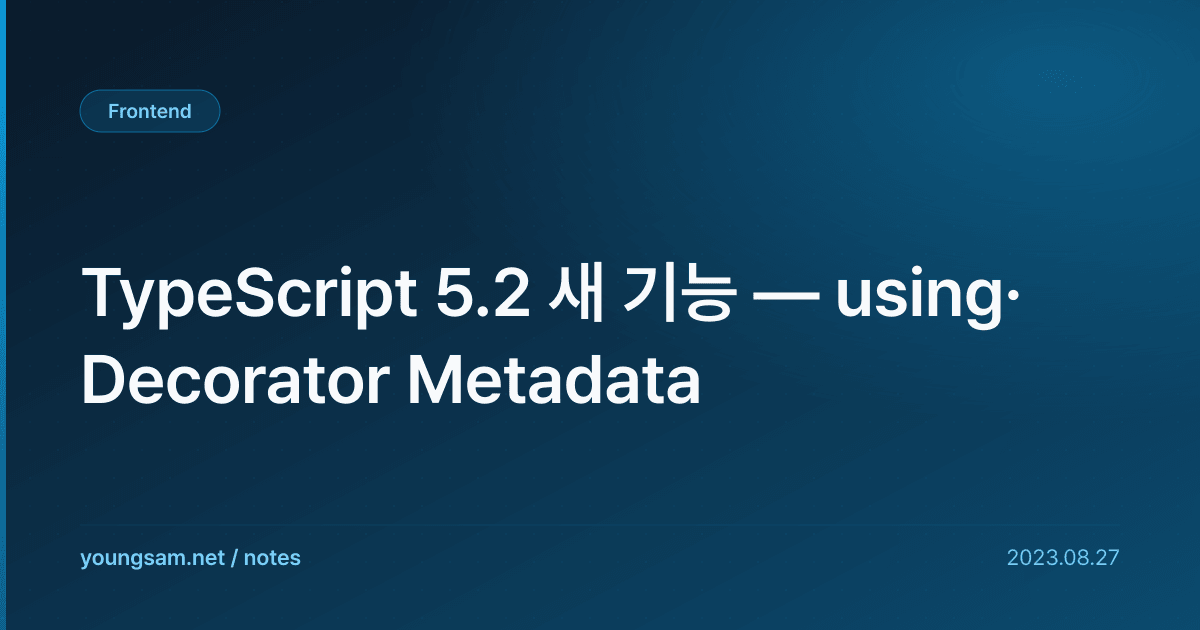 TypeScript 5.2 새 기능 — using·Decorator Metadata에 대해 심층적으로 다룹니다. 실무에서 바로 적용할 수 있는 내용을 중심으로 정리했습니다.