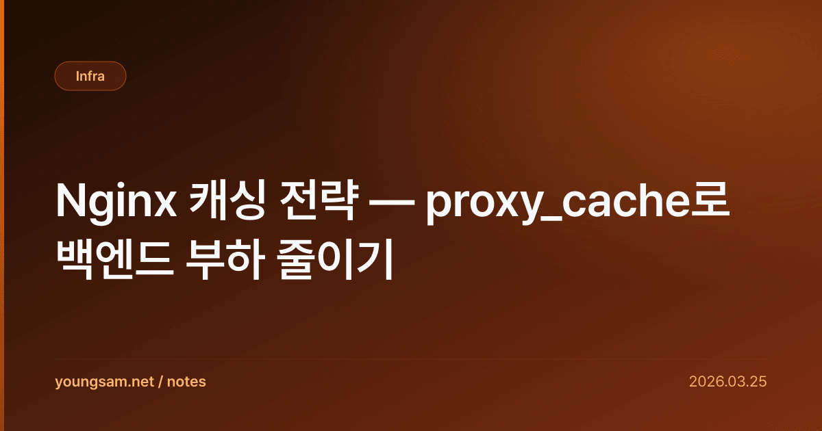 proxy_cache_use_stale로 백엔드 장애 시에도 서비스 유지 가능proxy_cache_lock은 Thundering Herd 문제 방지- 캐시 키 설계가 중요: 불필요한 쿼리 파라미터 제외로 히트율 향상