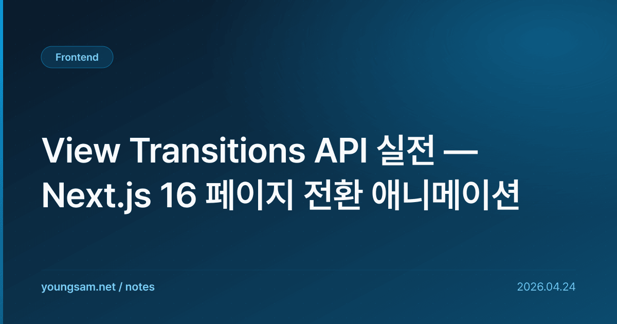 View Transitions API는 페이지 전환 애니메이션을 CSS 한 줄로. Chrome 111+, Safari 18+, Firefox 124+ 모두 지원. Next.js 16에서 공식 통합.
