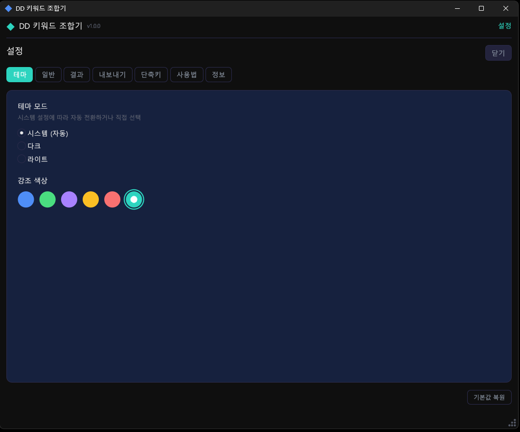 | 설정 저장 | JSON (%APPDATA%/DDKeywordCombinator/) |