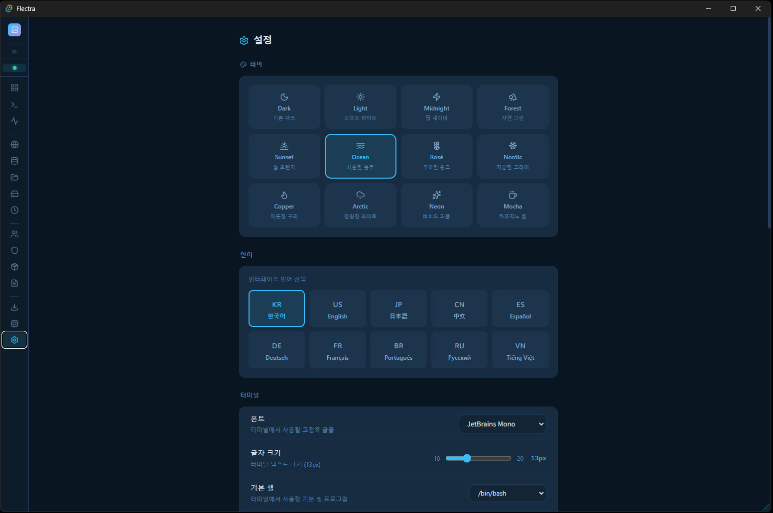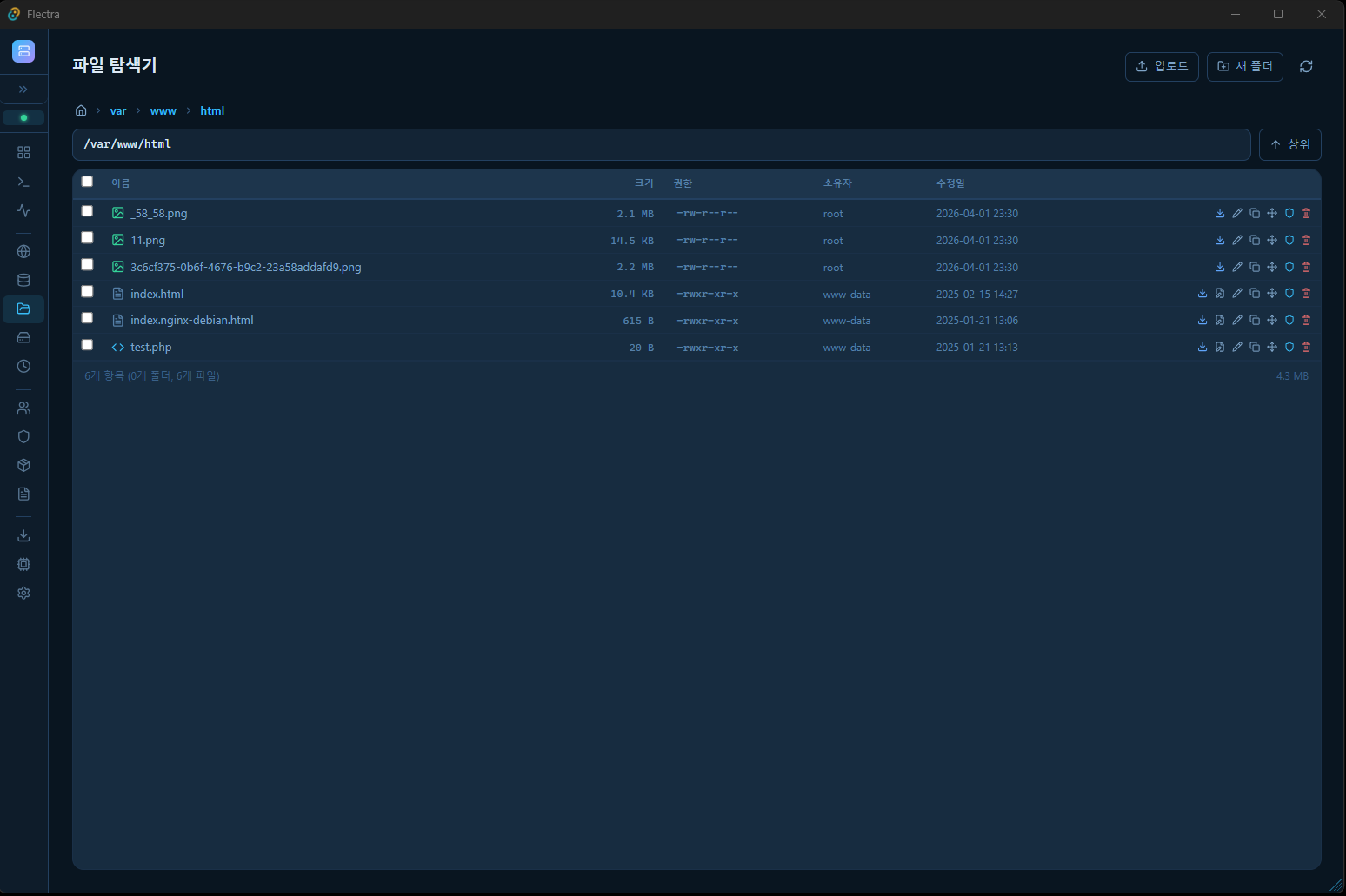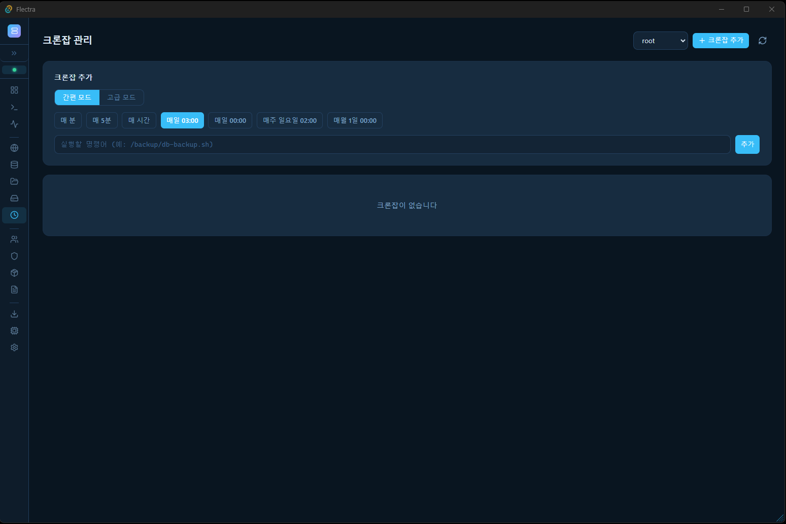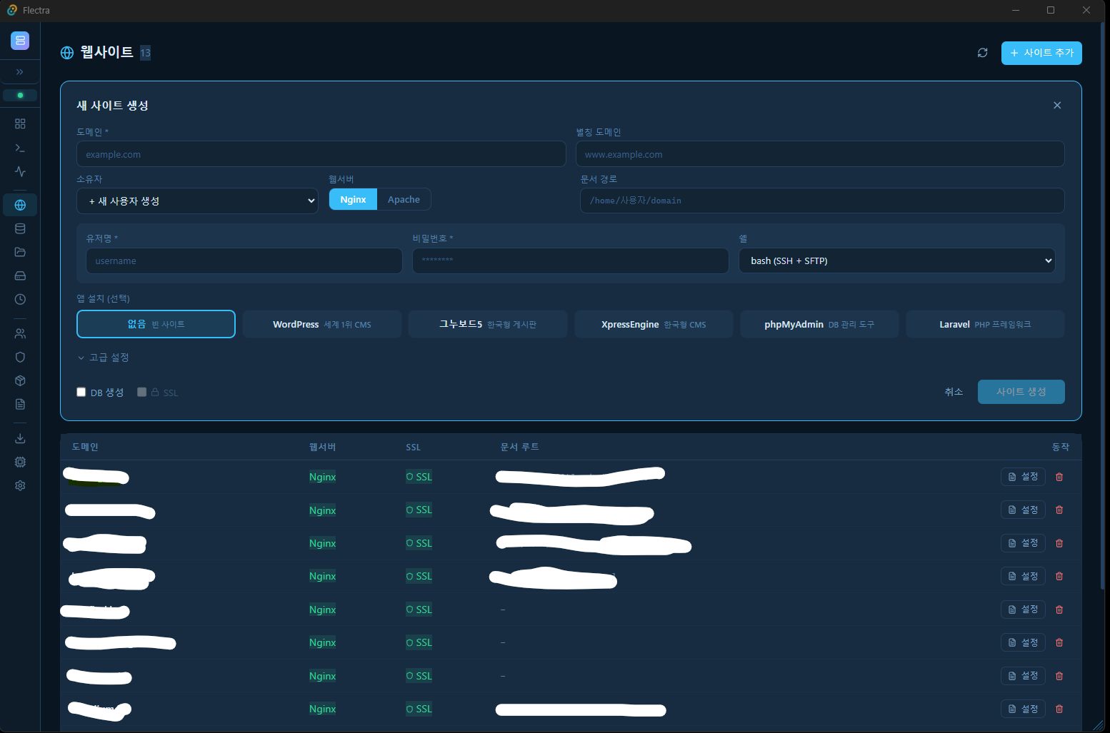 SSH만 있으면 됩니다. 서버에 패널을 설치하면 그 패널 자체가 보안 위험이 됩니다. Flectra는 서버를 건드리지 않습니다. 내 PC에서 SSH로 연결할 뿐입니다.